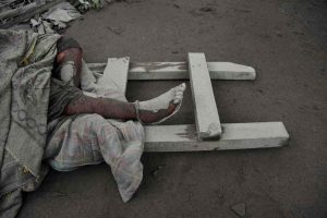 Verbrannte Leichen, zu Mumien erstarrt, von Asche bedeckt. Als der pyroklastische Strom aus Asche, Gas, Gestein und Lava die Bergflanke hinab raste, blieb vielen Dorfbewohnern keine Zeit zur Flucht. Einige Bilder erinnern an die antike Stadt Pompeji, wo viele Menschen bei ihrem Tagewerk von einem Vulkanausbruch überrascht und die Leichen im Lava konserviert wurden.