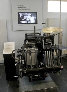 Die eingangs erwähnten Nostalgiker kommen im Erdgeschoss auf ihre Kosten: historische Maschinen, Handpresse, der berühmte Heidelberger Tiegel, Zylinder-Druckmaschinen, Abziehpressen für Korrekturabzüge – und alle auf funktionsfähigem und topgepflegtem Niveau. Die Funktionsweisen der Maschinen werden zudem durch historisches Filmmaterial visualisiert. Der Arbeitsplatz des Schriftsetzers mit Setzkästen, Setzschiff, Winkelhaken, Ahle, Typometer und Regletten – selbst der Autor dieser Zeilen (er ist gelernter Schriftsetzer) bekommt da feuchte Augen und Hände – und nicht zu vergessen: die von Ottmar Mergenthaler erfundene „Linotype-Setzmaschine“.