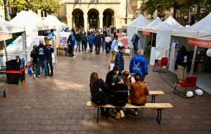 Am Samstag fand auf der place d’Armes in Luxemburg-Stadt die „Pyramide solidaire“ von Handicap International statt. Mit Informationsständen, Vorführungen und eindrücklichen Installationen machte die Organisation auf die Folgen von Kriegen und den Einsatz gegen explosive Kriegsreste aufmerksam. Besucherinnen und Besucher konnten eine rekonstruierte, bombardierte Wohnung besichtigen oder mit einer Virtual-Reality-Brille den Alltag von humanitären Helferinnen und Helfern erleben. Fachleute aus verschiedenen Ländern gaben Einblicke in die Bereiche humanitäres Minenräumen, Rehabilitationsmedizin, Inklusion und Nothilfe.
