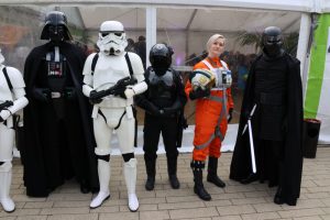 Die Sektionen der Zumbachicas.lu, die zum festen Inventar der Gemeinde Petingen zählen, traten zuerst einzeln auf, zum Schluss dann alle gemeinsam. Josette Conzemius, seit über 20 Jahren Präsidentin von Télévie Rodange, dankte ihnen speziell für ihren jahrelangen Einsatz für die Krebsforschung. Vorab aber traten die jüngsten Turner und Turnerinnen des Vereins AvantGarde auf. Draußen waren reihenweise Oldtimer und Retro Cars ausgestellt. Viel Begeisterung fand bei Groß und Klein das Star-Wars-Team um Darth Vader.