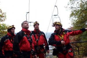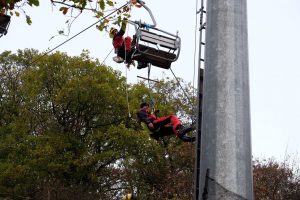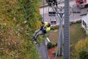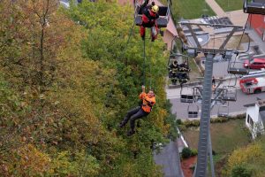 Ein solches Szenario wurde am Dienstag nachgestellt. Gemeinsam mit ihren Kollegen der Einsatzzentren Vianden und Diekirch übten die Höhenretter des „Groupe de reconnaissance et d’intervention en milieu périlleux” (Grimp), eine Spezialeinheit des CGDIS, den Ernstfall. Die Aufgabenstellung sah vor, Gäste des Sessellifts aus ihrer misslichen Lage abzuseilen. Als Statisten fungierten Einsatzkräfte der Feuerwehr und Arbeiter der Gemeinde Vianden.
