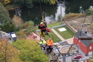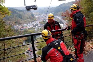 In Vianden befindet sich Luxemburgs einzige Sesselbahn. Die Touristenattraktion zieht jährlich zahlreiche Besucher an, die einen luftigen Blick über das Mittelalterstädtchen genießen wollen. Was geschieht jedoch, wenn die Gäste aus großer Höhe einmal gerettet werden müssen?
