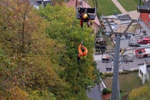 Nachdem die Höhenretter routiniert die Lage analysiert hatten, klappte die Rettung wie am Schnürchen. Lediglich zehn Minuten wurden pro Zweiersessel benötigt, um die Leute abzuseilen. Das sei ein guter Wert, zeigte sich der Einsatzleiter zufrieden über die Leistung seiner Männer.