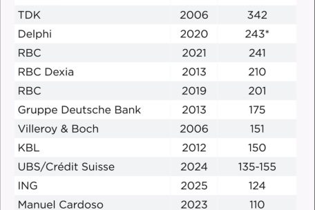 Auf den folgenden Plätzen liegen vornehmlich Finanzinstitute, die meist aus strategischen, firmeninternen Überlegungen ihr Geschäft umbauen wollten, was dann zulasten der Beschäftigten ging. RBC taucht in der Liste gleich dreimal auf. Mit dabei auch die Bank ING, die in den letzten beiden Jahren entschieden hat, das Geschäft mit den kleineren Kunden einstellen zu wollen, und daher die betreffenden Mitarbeiter entließ.