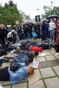 Mit Parolen wie „Black lives matter“, I can’t breathe“ und „No justice, no peace“ haben sich am Freitagnachmittag Hunderte Demonstranten in Luxemburg solidarisch mit den aktuellen Protesten rund um den Tod von George Floyd in den USA gezeigt. Die noch junge Vereinigung „Lëtz Rise Up“ hatte vor allem in den sozialen Netzwerken zu der Aktion vor der US-Botschaft auf Limpertsberg aufgerufen. Es waren überwiegend junge Menschen, darunter auch viele Mitbürger afrikanischer Herkunft, die dem Aufruf trotz des schlechten Wetters gefolgt waren.