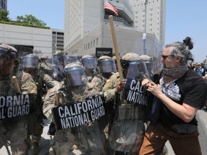 Bis zum frühen Sonntagabend (Ortszeit) hatte es nur in der Innenstadt der weitflächigen Millionenmetropole einzelne Proteste gegeben – in einer Größenordnung, die normalerweise kaum größere Wellen schlagen würde. US-Präsident Donald Trump sprach aber bereits von „gewaltsamen, aufständische Meuten“, die Los Angeles übernommen hätten. Trump nutzt solche Zusammenstöße als Rechtfertigung für den Einsatz der Nationalgarde und sogar eine Mobilisierung des regulären Militärs.