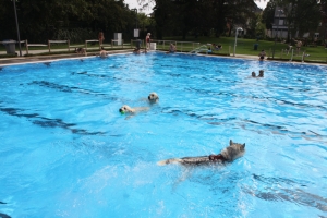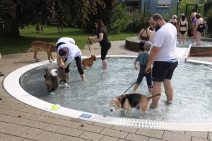 Rassen wie Australian Shepherd, Dogge, Mops, Border Collie, Akita Inu, Cocker Spaniel, Husky, Dalmatiner, Pudel oder Golden Retriever hatten schon früh am Morgen im kühlen Nass sichtlich Spaß. Rund um die zwei Schwimmbecken waren genügend Trinknäpfe aufgestellt. Nach dem ausgiebigen Badespaß tauschten die Hundebesitzer auf der Wiese Erfahrungen über ihr Lieblingstier aus.