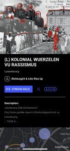 Insgesamt haben die Organisatoren 29 Stationen in Luxemburg-Stadt ausgemacht, an denen sich Überreste oder zumindest Bezüge zu Luxemburgs kolonialer Vergangenheit wiederfinden. Pro Station sollen auch die Quellen verfügbar sein, auf die sich die Organisationen basieren. Kurz danach soll das Material auch online auf der Webseite von „Richtung 22“ verfügbar sein.