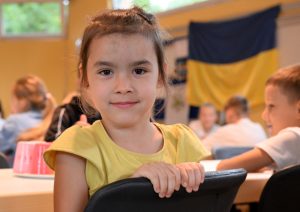 Von 9 Uhr morgens bis 17 Uhr bleiben die Kinder im Camp. Ihr Tag dort ist genau aufgeteilt, jede der drei Altersgruppen (6-7,8-10,11-12 Jahre) hat einen festen Stundenplan. Die meisten der ukrainischen Helferinnen arbeiteten bereits vorher in der Heimat mit Kindern, sei es als Lehrerin, als Sportpädagogin oder Kunsterzieherin. Neben den erwähnten Aktivitäten erteilen ihnen freiwillige Helferinnen Unterricht in Französisch, Englisch und Ukrainisch.