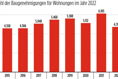Die Gründe für diese Entwicklung sieht Statec in „verschiedenen wirtschaftlichen und politischen Faktoren“, wie beispielsweise den steigenden Rohstoffpreisen und höheren Zinssätzen. Den stärksten Rückgang habe die Statec in Luxemburg-Stadt festgestellt, wo die Zahl der genehmigten Wohnungen von 1.701 im Jahr 2021 auf 772 im Jahr 2022 zurückging. In den Nord- und Westkantonen wurden 242 Wohnungen weniger gebaut. Die Zentral- und Südkantone verzeichneten einen Rückgang um 157 Wohnungen. Die Gemeinden in den Ostkantonen genehmigten 459 Wohnungen im Jahr 2022 und 527 im Jahr 2021, was einen Rückgang von 68 bedeutet.