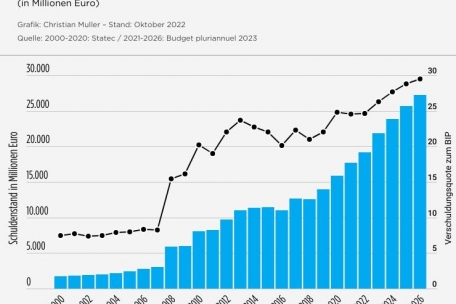 Mit den steigenden Schulden und dem angehobenen Leitzins steigen derweil auch die Zinszahlungen, die Luxemburg auf seinen Schulden zahlen muss. Bereits letztes Jahr wurde erklärt, dass die Summe von 118 Millionen Euro im Jahr 2021 auf 440 Millionen im Jahr 2026 ansteigen werde. Nun sollen es 2027 bereits 620 Millionen Euro sein. Dieses Geld sind Steuereinnahmen, die für Zinszahlungen benutzt werden. Im Jahr 2013 hatte Luxemburg erstmals neue Schulden aufgenommen, um alte zu refinanzieren.