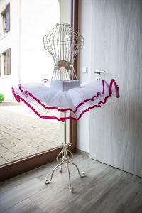 Nach einem Jahr wanderte ihre Kollektion dann in ein kleines Lokal der Tanzschule in Sandweiler. Dass Samantha das Gebäude in Canach gefunden hat, war ein reiner Glücksgriff. Zufällig stieß sie auf den Grundstücksbesitzer, der ihr den Rohbau zur Verfügung stellte. „Sein Architekt hat mit mir zusammen die Pläne für das Interieur entworfen. Ich wollte alles in Weiß haben, richtig chic eben mit einer kleinen Küche und Sitzecke im Obergeschoss, damit die Eltern gemütlich eine Tasse Kaffee trinken können, während ihre Kinder anprobieren“, sagt Samantha. Herd und Kühlschrank fehlen zwar derzeit noch, doch wohlfühlen lässt es sich im „Dancer’s Corner“ aber allemal. Das helle Gebäude mit den großen Fenstern ist lichtdurchflutet, am Eingang erwartet die Kunden eine verschnörkelte Mannequin-Puppe in weißem Tutu und auch sonst versteckt sich in jedem Winkel etwas, das zum Thema Tanzen passt.