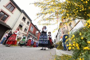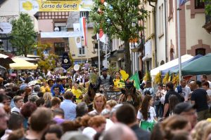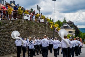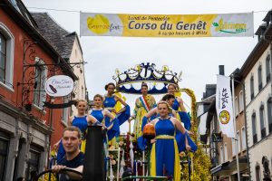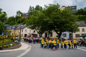 37 Gruppen aus Luxemburg und anderen europäischen Ländern präsentierten der tausendköpfigen Zuschauerschaft ihre selbst gebauten Umzugswagen beziehungsweise ihr musikalisches Können. Wohin man auch den Blick schweifen ließ, waren Sträuße aus goldgelbem Ginster zu sehen, mit dem die ganze Stadt geschmückt war.
