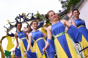 Passend zum Motto des Festzugs („Visit Éislek“) waren in den Formen der Wägen touristische Attraktionen oder Kulturgüter aus der nördlichen Hälfte des Landes zu erkennen.