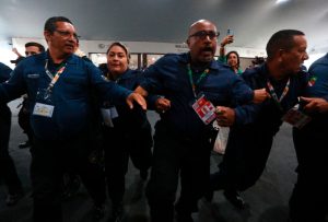 Im Anschluss verbarrikadierten die Sicherheitskräfte die Eingänge zur „Blauen Zone“, dem Kernbereich der Klimakonferenz, mit Tischen und Möbeln. Ein AFP-Journalist sah, wie ein Polizist in einem Rollstuhl weggebracht wurde.