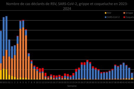 Bei den RSV-Fällen ist eine ähnliche Entwicklung beobachtet worden: ein Anstieg von 83 Prozent. Waren es in Kalenderwoche 47 noch 66 Fälle, sind in Kalenderwoche 48 bereits 119.