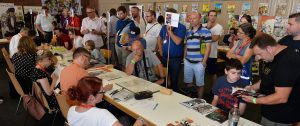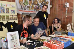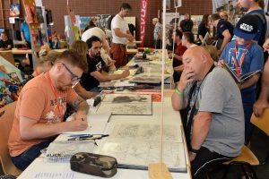 Wer einmal den Zeichnern über die Schulter schauen wollte, konnte dies in diesem Jahr zum ersten Mal in Form eines Zeichenbattles tun. Jeweils zwei Künstler traten gegeneinander an und zeichneten unter Zeitdruck neue Kunstwerke, die zu einem späteren Zeitpunkt für einen karitativen Zweck verkauft werden. Dass das BD-Contern mittlerweile sogar mehr als nur ein Comic-Mekka geworden ist, zeigt das Rahmenprogramm, das neben den oben angeführten Ausstellungen, Signierstunden sowie Zeichenbattles auch noch Zaubershows sowie Konzerte, etwa von Dreamcatcher, beinhaltet und somit sicherlich auch für jeden Flaneur in Conterns Straßen etwas dabei war.