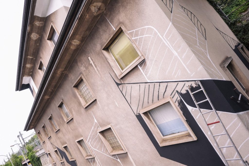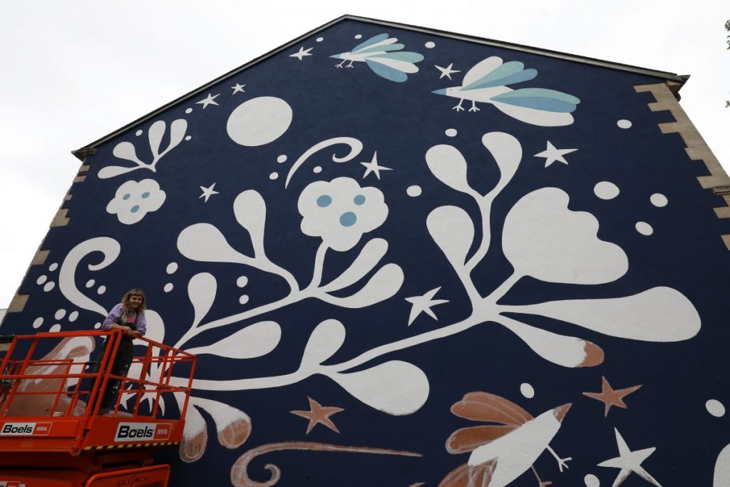 Die junge Luxemburgerin Lisa Junius ist zum ersten Mal beim Urban-Art-Festival mit dabei. Es ist ihre zweite Wand und zudem die erste im Freien. Ihr erstes murales Werk befindet sich in Differdingen im Creative Hub „1535“. Auf dieses waren die Veranstalter bei Instagram (wo Junius geschlagene 52.700 Follower hat) aufmerksam geworden. Sie wird freihändig zeichnen und hat sich darauf eingestellt, eventuell mehrfach runterzuklettern, um zu schauen, ob ihre Linien so verlaufen, wie sie sich das vorstellt.