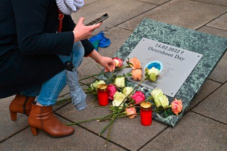 14. Februar: Valentinstag in Luxemburg ist auch „Overshoot Day“. Theoretisch hat das Großherzogtum an diesem Tag alle Rohstoffe verbraucht, die die Natur innerhalb dieses Jahres wiederherstellen könnte. Nur Katar war um vier Tage „schneller“. Vor der Chamber trägt das „Mouvement écologique“ symbolisch die Erde zu Grabe.