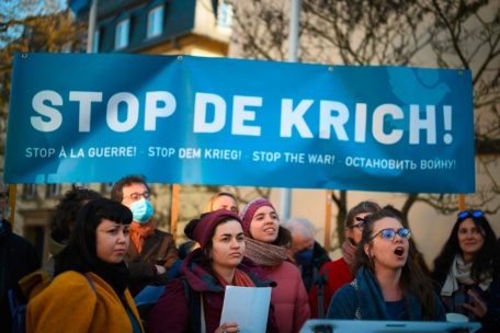 5. März: In Europa protestieren Zehntausende gegen Putins Angriffskrieg. Auch in Luxemburg kommen 3.000 Menschen zusammen, um ihre Solidarität mit den Menschen in der Ukraine zu bekunden. Die EU beschließt erste Sanktionen gegen Moskau, immer mehr internationale Sportverbände schließen russische und belarussische Mannschaften und Sportler aus. Als einige der ersten gehen UEFA und FIFA diesen Schritt.