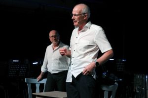 „Méi wéi Béierdeckels-Gespréicher“ heißt der Abend. Und das trifft es. Es sind mehr als Tresengespräche. Es geht um ihn. Um mehr als nur das gesprochene Wort. Es geht um sein Denken mit Empathie. Seinen Humor ohne Zynismus. Seinen Humanismus ohne Pathos. Man kann sich vorstellen, wie er dasteht, mit diesem einnehmenden Lächeln, das fragt: „Meint ihr das wirklich ernst?“ Er ist in den Erinnerungen, im Klang der Musik, in den Zwischentönen.
