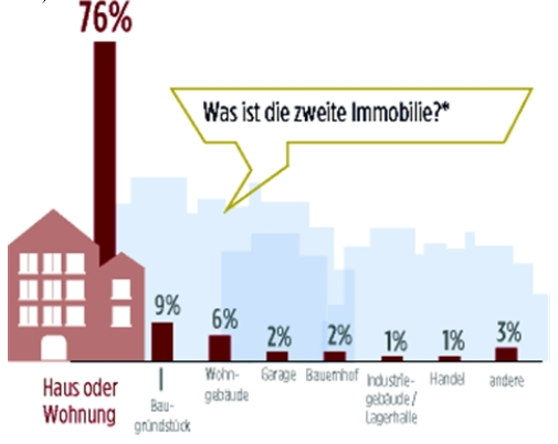 Fast die Hälfte der Zweitimmobilien außerhalb des Landes werden für private Zwecke genutzt. Innerhalb des Landes sind dies nur acht Prozent. Etwa die Hälfte der zum Haushaltsbesitz zählenden Zweitimmobilien im Lande werden vermietet.