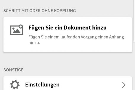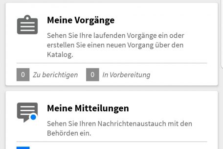 … neue Vorgänge starten. Rufen Sie die Rubrik „Meine Vorgänge“ auf und betätigen Sie den blauen Plus-Button unten rechts. Anschließend erscheint ein Bildschirm mit den verfügbaren Optionen.