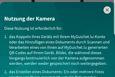 Auf dem Computerbildschirm erscheint nun ein QR-Code, den der Nutzer mit der MyGuichet-App scannen kann. Damit wird die Verbindung zwischen dem Konto und der App hergestellt. Dieser Vorgang muss nur ein Mal pro Gerät vorgenommen werden.