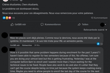 Weitere Facebook-Nutzer berichten von erheblichen Schwierigkeiten bei der Online-Einschreibung für Sprachkurse am INLL. So sei der Server des Sprachinstituts angeblich seit mehreren Jahren am Tag der Registrierung abgestürzt. Interessierte hätten mehr als eine Stunde lang warten müssen, um dann schließlich festzustellen, dass zu den gewünschten Zeiten kein Platz mehr frei war. Das Sprachinstitut schrieb dazu auf Facebook: „Das INLL wurde Opfer seines Erfolgs und seine Anmeldeplattform wurde überrannt“.