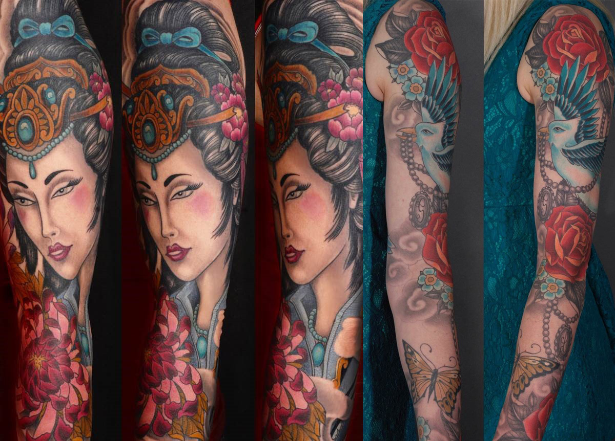 Über die Jahre hat sich ergeben, dass sie und ihr Freund verstärkt an größeren Tattoos arbeiten, die beispielsweise den gesamten Rücken oder eben auch die Arme einnehmen. Solche Gesamtkunstwerke müssen gut geplant werden. Deswegen sind die Kunden auch dazu angehalten, kleine Dossiers anzulegen, mit jenen Elementen, die im Tattoo enthalten sein sollen. Nach eingehenden Gesprächen werden dann erste Skizzen angefertigt und in der Folge bei einem Testlauf auf die Haut aufgezeichnet. „Wir zeichnen außerdem mittlerweile immer mehr Dinge, die wirklich nur für eine Person bestimmt ist“, fährt Carole Thill fort. Da scheint es logisch, dass sich allein dieser Prozess über mehrere Termine ziehen kann.