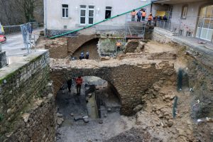 Die auf einem Felsen stehende Burg Hollenfels wurde erstmals im Jahr 1129 namentlich erwähnt und 1948 vom Staat erworben. Seit 2022 ist sie Teil des nationalen Kulturerbes, wobei sie sich besonders durch den gut erhaltenen Bergfried auszeichnet. Im Kontext der Renovierungsarbeiten an der Jugendherberge fanden in der zweiten Hälfte des vergangenen Jahres Ausgrabungen im Innenhof statt. Dabei kam es zu einem sensationellen Fund: Ein vermauerter Außengraben, zwei Wehrtürme und eine intakte Steinbogenbrücke wurden freigelegt. Die Entdeckung brachte wichtige Erkenntnisse über die Vorburganlage, deren Mauerzüge bislang kaum bekannt waren.