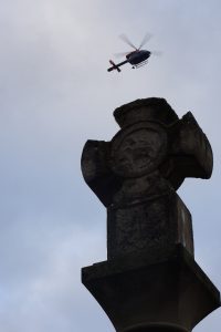 Ein Blick auf das Foto zeigt, das der Heli nur zur Beruhigung der Bürger nach dem Motto „Die Police ist aktiv“ angefordert worden ist. Man kann klar erkennen, das die Täter einen Radmitternschlüssel aus einem PKW verwendet haben um die Vitrine aufzubrechen. Dann waren die Täter bestimmt nicht zu Fuß unterwegs und haben sich in der Nähe versteckt.