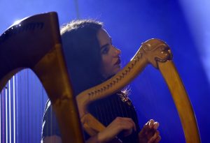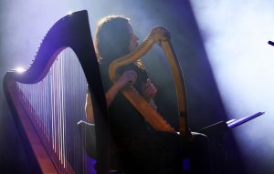 Weiter ging es mit den Bretonen An Erminig, die mit keltischer Harfe, Dudelsack, Violine, Gitarre, Flöten und Akkordeon hauptsächlich im Bereich der ruhigen Klänge blieben, aber auch das Publikum dazu aufriefen, das Tanzbein zu traditionellen keltischen Tänzen zu schwingen.