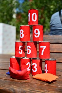 Spaß haben sie und die anderen Familienmitglieder am Montag beim Wurf- und Geschicklichkeitsspiel Leitergolf. Dabei muss man mit aneinandergebundenen Bällen die Sprossen eines Leitergestells treffen. Bleiben die Bälle an der obersten Sprosse hängen, gibt es drei Punkte. In der Mitte sind es zwei und landet der Ball unten, erhält man einen Punkt. „Die Kinder können das einzeln oder in Teams spielt“, erklärt eine Animateurin. Zwei oder drei Personen sind immer vor Ort und bereit, Informationen zu den Spielen zu liefern und bei Bedarf Hilfe anzubieten.