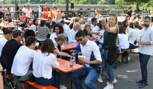 Obwohl der eine oder andere Regenschauer vorhergesagt worden war, blieben die Radfahrer trocken. Die sommerlichen Temperaturen kurbelten nach der Ankunft wenig überraschend den vom LG Alzingen geführten Getränkeverkauf an der „Gëlle Fra“ mächtig an. Die „Vëlosmanif“ unter dem Motto „Safe cycling now!“ war erstmals in ein Fahrradfest eingebettet. Und das auf einem Platz, der ansonsten den Autos vorbehalten ist. Warum die „place de la Constitution“ als einer der schönsten Plätze der Hauptstadt mitsamt seines fantastischen Ausblicks im Jahr 2022 noch immer als oberirdischer Parkplatz fungiert, dafür haben nicht nur die Radfahrer wenig Verständnis.