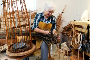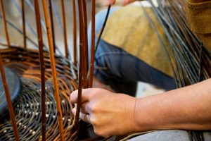 „In den Veranstaltungen kommen Menschen zwischen Mitte 20 bis Ende 80 zusammen“, sagt sie. Das Interesse erklärt sich – neben dem Gefühl – durch die Tatsache, dass das Handwerk mittlerweile Seltenheitswert hat. Es gibt nur noch wenige Flechtmeister wie Wolfgang Gladziewski in der Eifel. Er bringt Jacqué vor zehn Jahren Technik und Kniffe der Weidenverarbeitung bei.