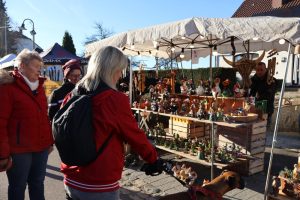 Auch Stephan, der seinen Nachnamen (noch) nicht veröffentlicht sehen will, hat im Kunsthandwerk seine Leidenschaft gefunden. Zusammen mit seiner Frau war der Kreateur hinter „StephiMini“ am Wochenende zum allerersten Mal auf einem Markt. Die Begeisterung, vor allem bei kleinen Besuchern, war am Stand sofort riesig. Das Paar aus Saarbrücken, das eigentlich in der IT-Branche respektive im sozialen Bereich tätig ist, wurde während des Corona-Lockdowns aktiv und begann, Federengel, Seifentäschchen und anschließend Landschaftssets aus Filz herzustellen – natürlich alles handgefertigt. „Unser großes Thema ist Upcycling, also alten Materialien ein neues Leben zu schenken“, so Stephan. Aus ausgemusterten Frottee-Handtüchern der Hotelbranche werden so die Innenseiten der Seifenbeutel, aus gewaschenen Federn vom Bio-Hof eines Bekannten kleine Engel und aus Restwolle gehäkelte Käppchen für diese.