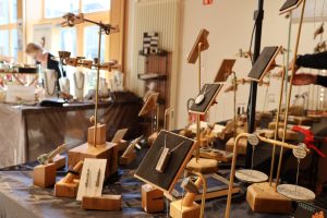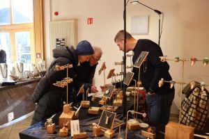 Antonys Kreationen sind zwar ein Hobby, können sich aber sehen lassen, was auch den großen Andrang am Stand erklärte. Dass Antony selbst eigentlich als Unteroffizier am Herrenberg arbeitet, wissen dabei nur die wenigsten: „Ich wollte eigentlich immer Goldschmied werden, war aber als Jugendlicher sehr durchtrieben und meine Eltern befürchteten, ich würde den Beruf nicht ernst nehmen. Ich habe also acht Jahre lang als Schreiner gearbeitet und nun bin ich auf dem ‚Härebierg’.“ Seinen Schmuck verschenkte Antony zuerst nur an Familie und Bekannte – den allerersten Ring trägt seine Frau heute noch. Irgendwann meldete sich der Hobby-Kreative dann für einen Stand auf dem städtischen Weihnachtsmarkt an und so begann die Produktion auch für Fremde. Die Arbeit an Drehbank, Fräse, Feile und Co. bereitet Antony Freude, denn diese ist eine willkommene Abwechslung zum Militär.