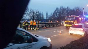 Die Verletzungen des Radfahrers sind laut ersten Angaben nicht schwer. Der Polizei zufolge ist der schwere Truck nämlich nicht über ihn gerollt. Da er sich aber offenbar mit seinem Gefährt unter dem Lkw verkeilt hat, haben sich die Bergungsarbeiten als schwierig dargestellt. „Die Rettungskräfte versuchen, den Mann so gut wie möglich da herauszuholen, ohne ihn zu verletzen“, sagt der Polizeisprecher. Nach der Bergung wurde der Mann ins Krankenhaus gebracht.