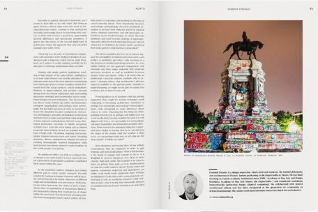 Derweil andere Akteure dieses Bereiches vorwiegend Berufe, Materialien, Entwicklungen und Umfeld der Branche in den Vordergrund rücken, steht bei „Adato“ stets das Werk, die Schöpfung und ihr sozio-kultureller Stellenwert im Mittelpunkt, ob es sich nun um schlichte Bauten, komplexe Gebäude oder die Gestaltung ganzer urbaner Räume handelt. Seit 2017 hat Anna Valentiny mit ihrem Verlag Point Nemo die Verantwortung übernommen. Das Magazin wurde logischerweise neu ausgerichtet. Aus einem Heft mit beweglichem Cover wurde eine Art Magazin mit hartem Buchdeckel und neuer Erscheinungsfrequenz sowie inhaltlicher Erweiterung. Mit Schwerpunktthemen wie „Reisen“, „Medizin“ oder „Archäologie“ konnte das Autorenkollektiv in Zusammenarbeit mit ausgewählten Experten in ihren Beiträgen neue Türen aufstoßen, die Architektur in ihrer geschichtlichen und sozialen Entfaltung, aber auch teils politischen Vereinnahmung hinterfragen und Korrespondenzen oder Spannungen herstellen. Das Magazin hat sich zur Dokumentation mit bleibendem Wert über die Tagesaktualität hinaus entwickelt.