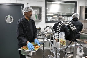 „Wir versuchen immer, eine gute Atmosphäre zu schaffen“, sagt Maxime De Azevedo. Er ist einer der beiden Sozialpädagogen, die sich um das Küchenpersonal kümmern – ihre Arbeit geht allerdings weiter. Es geht nämlich auch darum, pädagogische Elemente in den Alltag der Mitarbeiter zu integrieren. „Wir begleiten nebenbei auch das gesamte pädagogische Projekt der Personen. Falls sie beispielsweise einen Brief von der Steuerverwaltung oder vom ONIS nicht verstehen, sind wir die erste Kontaktperson“, erklärt Maxime. Und: Wenn jemand Französisch lernen muss, dann muss sie nur 20 bis 30 Stunden pro Woche in der Küche arbeiten. Die restliche Zeit belegt sie dann Französischkurse. Eine Person, die hingegen eher Probleme mit Verlässlichkeit und Pünktlichkeit hat, wird anders begleitet. „Wir passen unsere Begleitung immer an“, sagt Maxime.