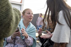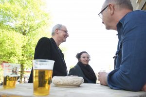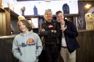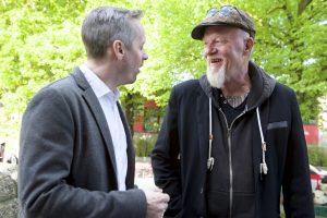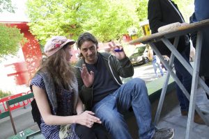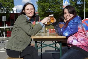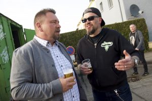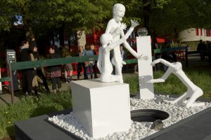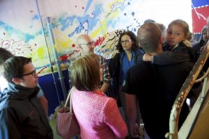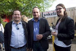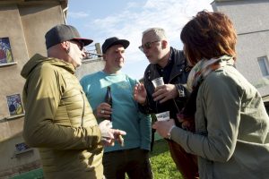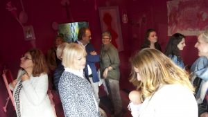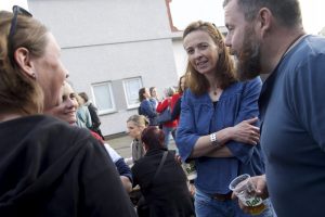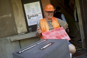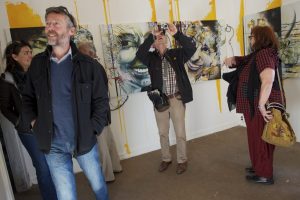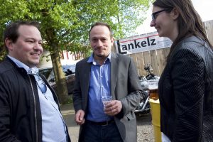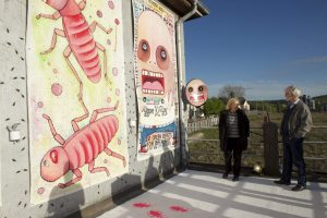 Die Stimmung war auf jeden Fall, wie bereits bei den anderen Ausstellungen von „Cueva“, hervorragend. „Guck mal die Mauer. So eine will ich auch in meinem Zimmer“, rief ein Kind, das auf der Terrasse des Hauses ein Werk erblickt hatte, seiner Mutter zu. Die Besucher kamen aus dem Staunen nicht heraus, sei es im oder vor dem Haus, denn die Künstler hatten auch den Vorgarten und die Fassade nicht vernachlässigt.