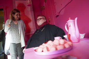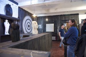 Im Haus selbst ging es farbenfroh zu. Bereits hinter der Eingangstür betrat man eine andere Welt. 39 Künstler aus dem In- und Ausland stellen im ehemaligen Einfamilienhaus gegenüber der Lallinger Grundschule aus. Skulpturen, Bilder, Fotos, dekorierte Zimmer, Lichtanlagen usw., sämtliche Kunstdisziplinen sind in „Lankelz“ präsent. Bleibende Erinnerungen hinterließen gestern u.a. die Treppenhäuser, die den Eindruck verstärkten, in eine magische Welt weit weg vom Alltag einzutreten. In einigen Räumen konnte man mit den Erschaffern der Werke reden. In einem Zimmer waren gestern, als das Tageblatt die Ausstellung besuchte, sogar einige Studenten dabei, die Künstler zu interviewen.