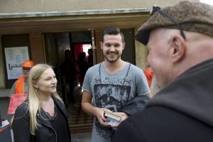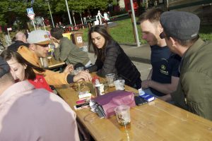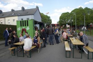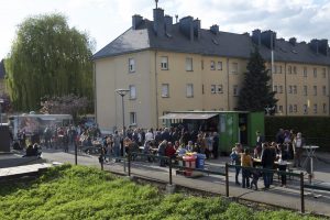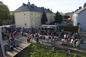 Das Warten hatte am Freitag ein Ende: Nach langen Vorbereitungen wurde die neueste Ausstellung des Künstlerkollektivs „Cueva“ feierlich eröffnet. Viel Prominenz, nicht nur aus Esch, hatte sich eingefunden, um die Werke der Künstler zu bestaunen und zu kommentieren. Die Besucher kamen zu Hunderten und schlängelten sich durch die engen Gänge und die Zimmer des Hauses. Viele saßen vor dem Gebäude, auf einer improvisierten Terrasse und fachsimpelten über das Erlebte. Neben dem Wohnhaus ging es ebenfalls hoch her. Hier hatten mehrere Food Trucks und Getränkeausgaben Position bezogen, um die Gäste mit Essen und Trinken zu versorgen. Für die richtige Stimmung sorgte eine Musikanlage.