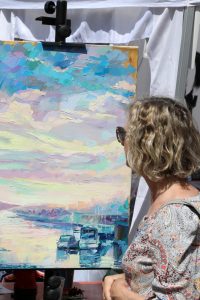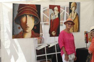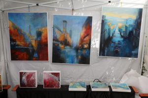 An der letzten Ausgabe im Juni beteiligten sich laut Gemeinde rund 20 Künstler aus acht verschiedenen Ländern. Auch an diesem Sonntag trifft man hier Kreative aus dem In- und Ausland an. Unter den Luxemburger Kunstschaffenden befinden sich u.a. die in Esch/Alzette geborene Viviane Briscolini, deren ausgestellte Gemälde kraftvolle Meer-Motive zeigen, sowie die Kunstlehrerin und Künstlerin Veronika Lobanova, die seit Anfang des Jahres das Atelier „StartArt“ in Differdingen leitet.