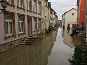 Denn selbst wenn man den Fahrer nicht später aus seinem abgesoffenen Auto retten muss: Die Sperrungen haben durchaus ihren Sinn – und wer bis zum letzten möglichen Meter vorfährt, verursacht möglicherweise später eine chaotische Situation, wenn doch geräumt werden muss, mahnt der Feuerwehr-Chef – und merkt noch an, dass die gegenwärtige Situation im Ganzen hätte verhindert werden können: „Wenn der in der Planung befindliche Hochwasserschutz schon aktiv wäre, hätte Remich trockene Füße behalten!“