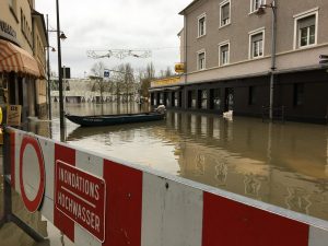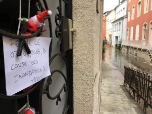 „Für uns ist es immer das Gleiche, wir sind daran gewöhnt. Das einzige Problem ist oft, dass die Bewohner, vor allem die Zugezogenen, keine Stiefel haben. Sie glauben dann, wir würden sie ihnen bringen“, so Guy von der lokalen Feuerwehr. „Ansonsten besteht unsere Aufgabe morgen früh darin, die Kinder mit unserer kleinen Gondel in die Schule zu bringen und das Brot für den Bäcker abzuholen. Vielleicht können wir morgen Nachmittag schon mit den Aufräumarbeiten beginnen, ich denke aber eher nicht. Keller auspumpen müssen wir später nur zwei, aus den restlichen läuft das Wasser von alleine wieder ab.“
