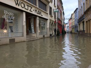 So viel Glück hatte Sati Kailash nicht. Ihm gehört ein indisches Restaurant, das sich einige Meter weiter befindet, und auch er selbst wohnt mit seiner Familie in einem der betroffenen Häuser: „Hier bei uns ist es nicht so wie in anderen Ländern, in denen das Hochwasser unerwartet und über Nacht kommt. Wir konnten uns vorbereiten. Zwar haben wir die letzten Nächte nicht viel geschlafen und immer den Pegel online im Auge behalten, aber wir konnten alles früh genug aus dem Weg räumen.“ Die Reservationen fürs Wochenende musste Sati leider stornieren. Im Restaurant, das im Erdgeschoss liegt, stehen zurzeit 30 Zentimeter Wasser.