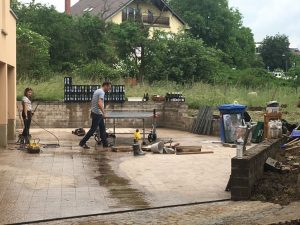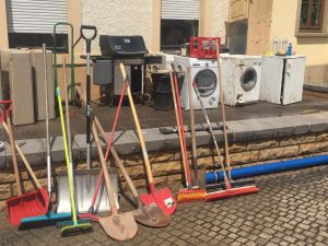 Innerhalb von 20 Minuten standen Keller, Küchen, Erdgeschosse und Garagen unter Wasser. „Es war unmöglich in der ersten Stunde etwas zu tun“, sagt Schwachtgen, „das war eine reißende Flut“. Die Welle kam um 14.00 Uhr. 1,20 Meter hoch erzählen die Einwohner. Autos wurden fortgeschwemmt, Straßen von den Wassermassen aufgerissen. Hinzu kommt Schlamm und Geröll, das der Strom durch das Dorf mittransportiert hat. Am Samstag gab es kaum einen, der nicht mit Gummistiefeln unterwegs war – so auch Bürgermeister Marco Albert, der mit anpackte. „So viel Wasser ist wirklich ungewöhnlich“, sagt er. Auch er ist, wie viele Einwohner spät nachts und weit nach Mitternacht ins Bette gekommen. „Wir müssen schauen, dass wir die Häuser wieder in Schuss bekommen“, sagt Albert. Das letzte Mal, dass in Greiveldingen etwas Vergleichbares geschah, war 1979. Da waren es aber nur 20 Zentimeter. Der aktuelle Sachschaden ist noch gar nicht zu bemessen – weder für die Gemeinde noch für die Einwohner.