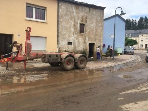 Während die Mosel ruhig dahingleitet, kommen die Einwohner von Greiveldingen, nur ein paar Kilometer weiter, nicht zur Ruhe. Als im Mullerthal am Freitag das Schlimmste überstanden schien, ging es in dem Dorf erst richtig los. Innerhalb von 20 Minuten löste der Regen ab 14.00 Uhr am Freitag eine Schneise der Verwüstung aus. Verschlammte Keller, Küchen und Garagen, die zur Zeit geputzt werden, erzählen davon.